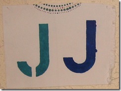 6” stencils lettering, notice blobs on right side of blue J. Need to figure out some ways to embellish those inevitable mistakes